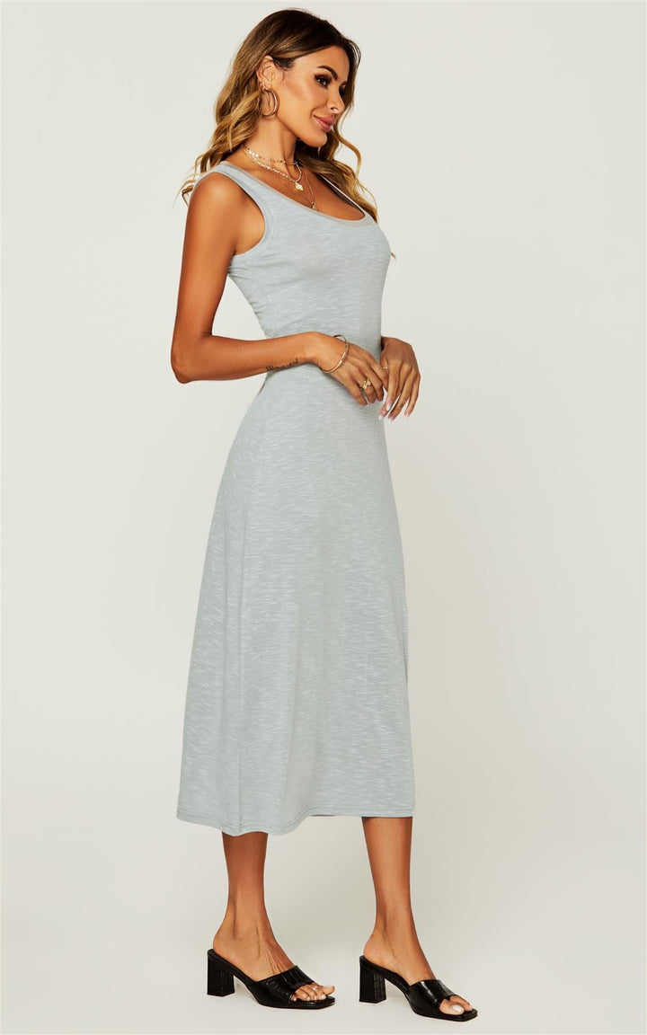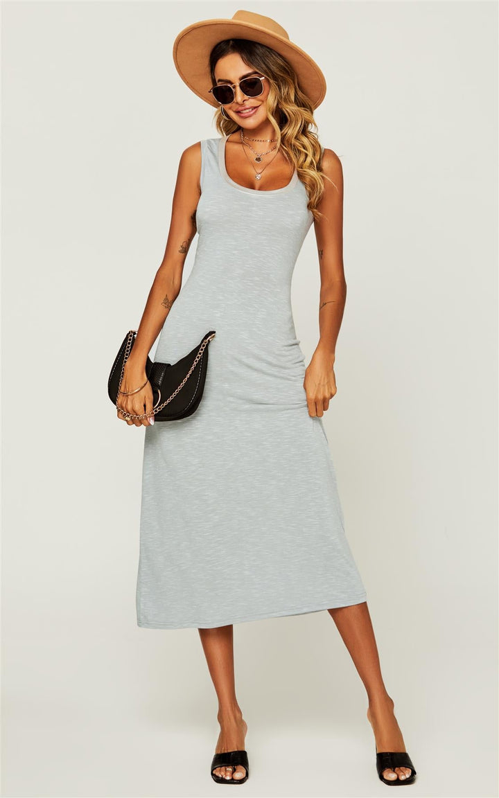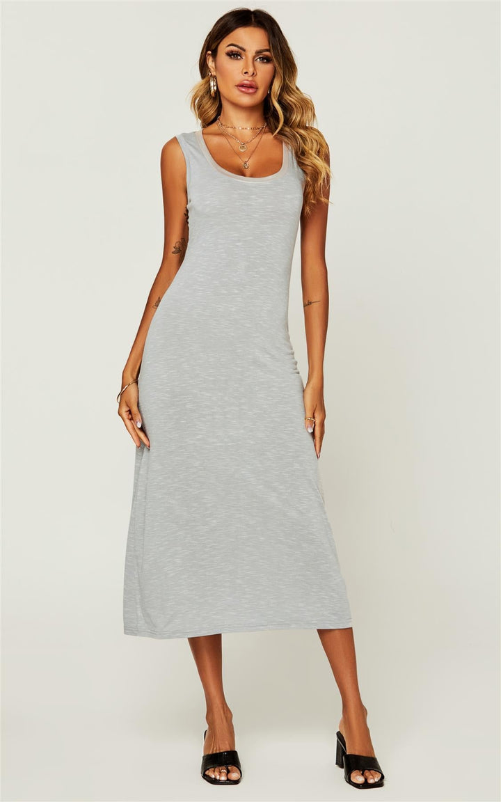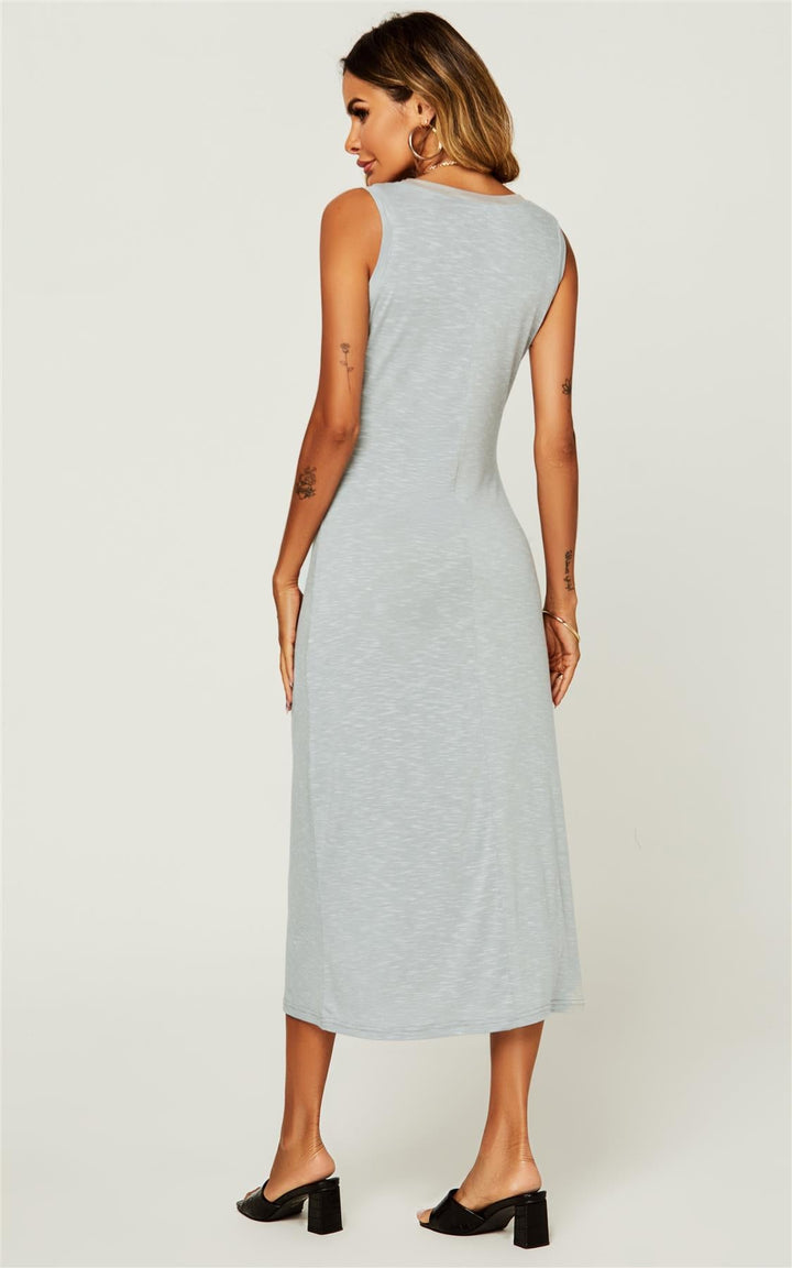 Ärmelloses Jerseykleid im schlichten Stil mit silbernem Besatz in Grau