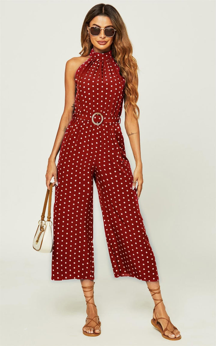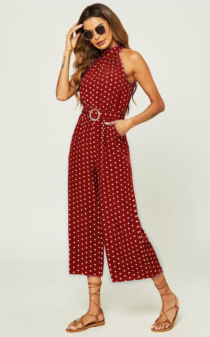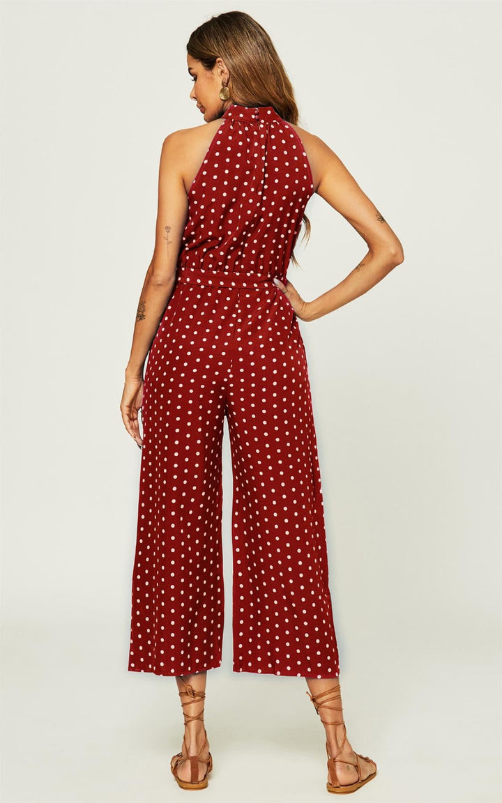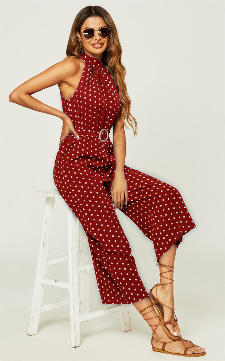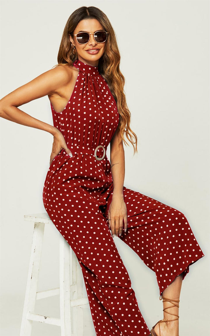 Jumpsuit met hoge hals en rode stippen
