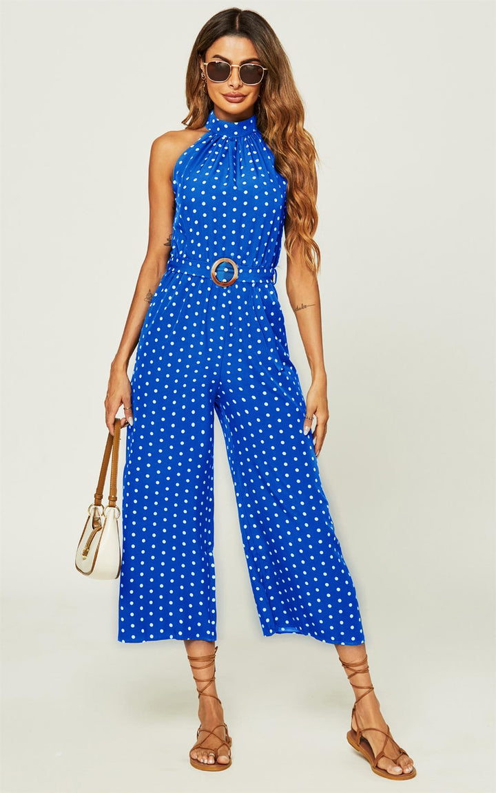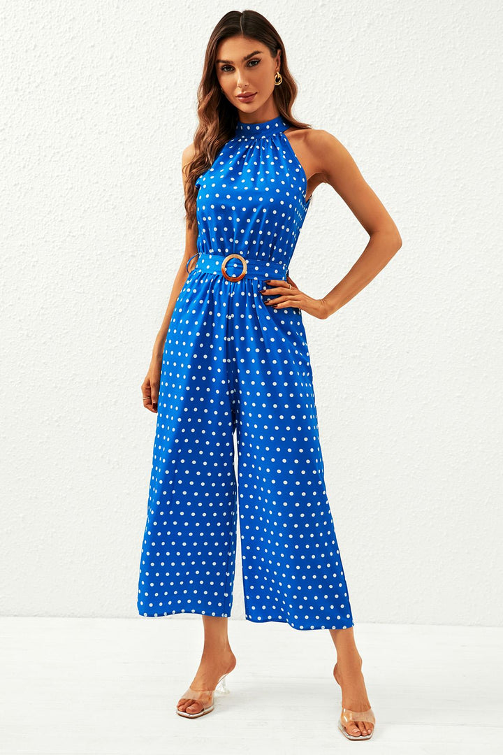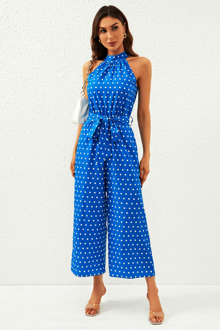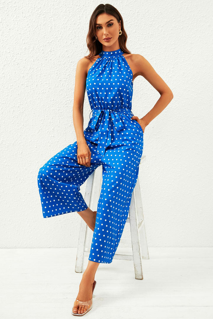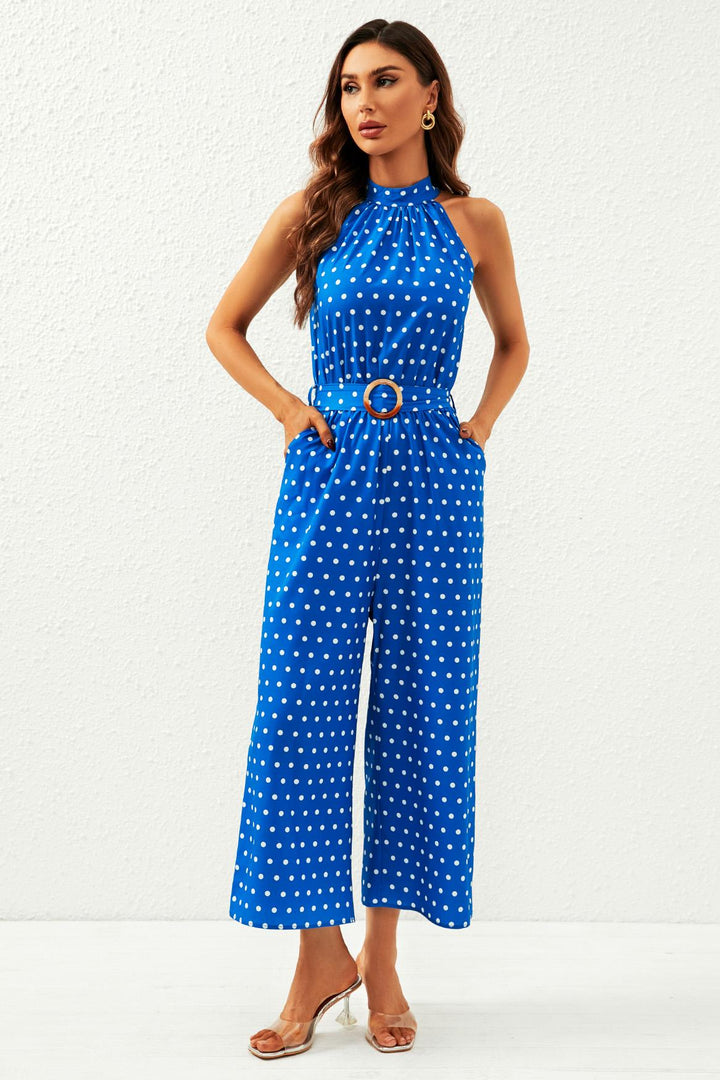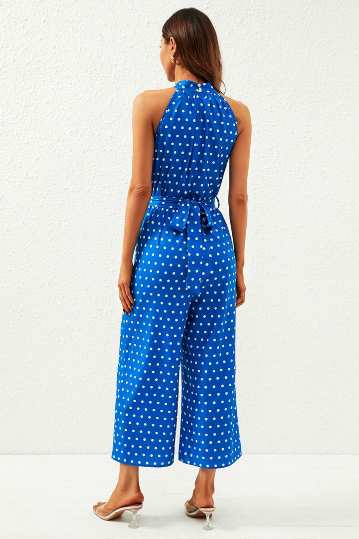 Polka Dot High Neck Jumpsuit in blauw