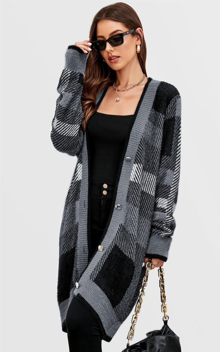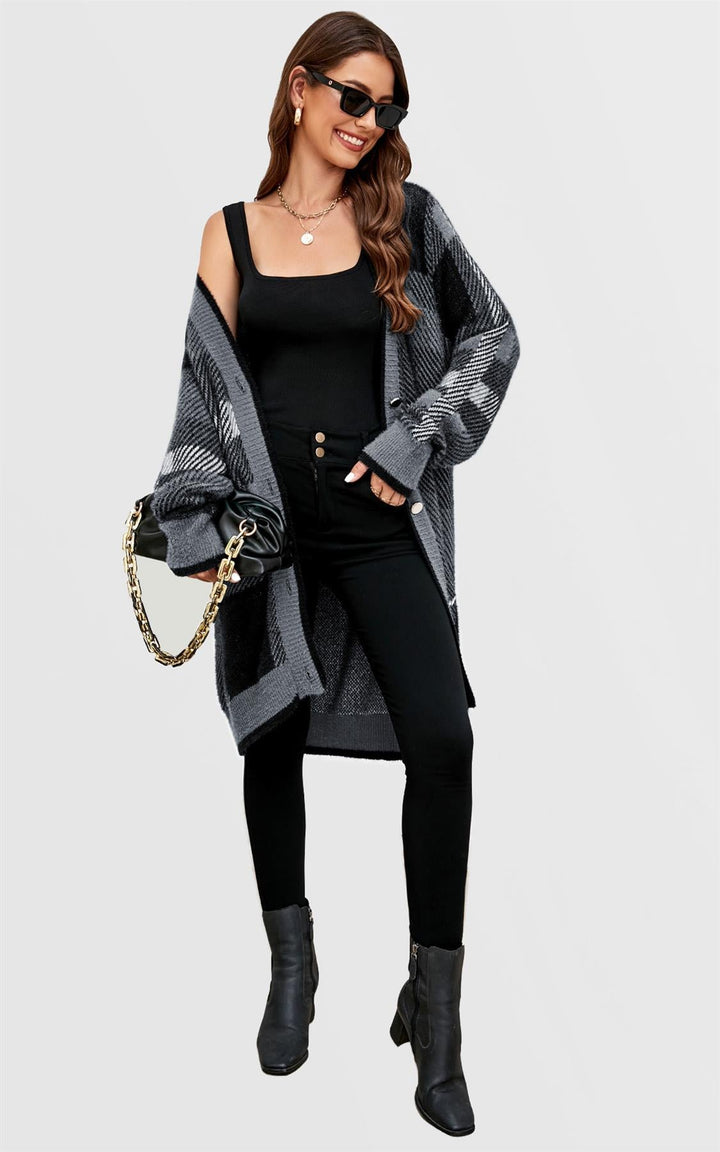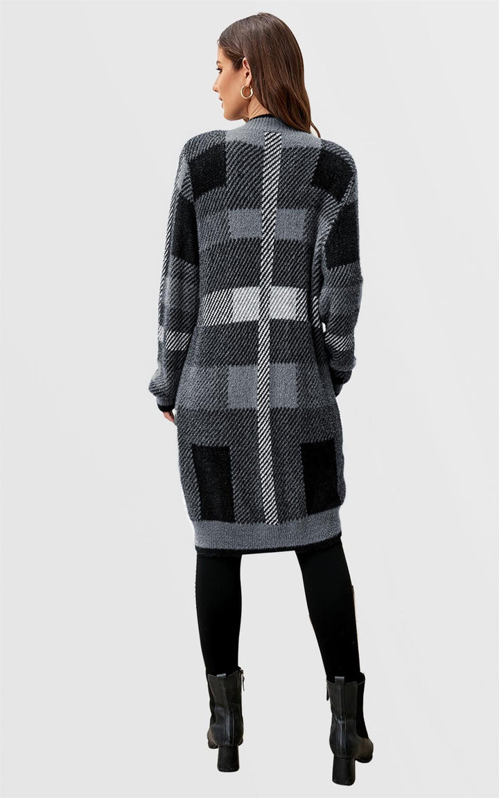 Relaxed Check Cozy Soft Cardigan in Petrolblauw