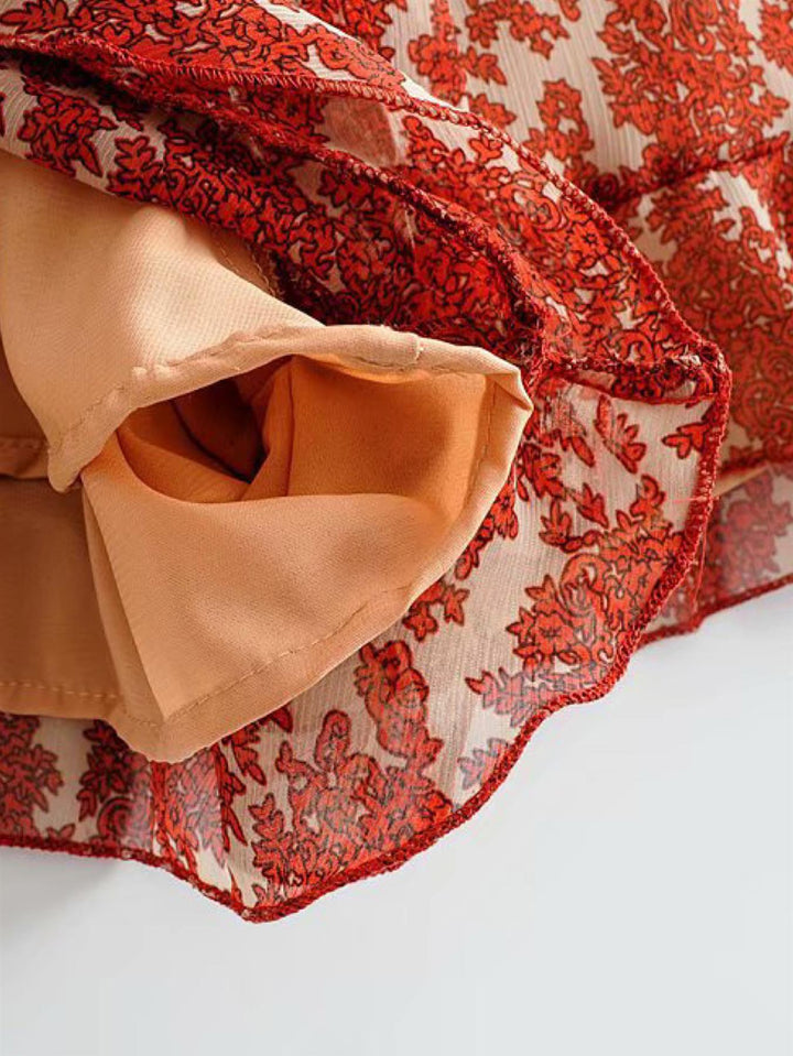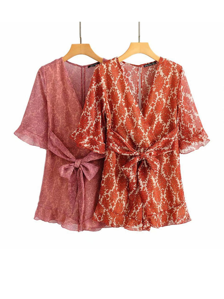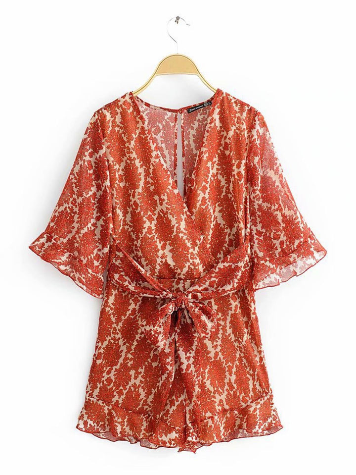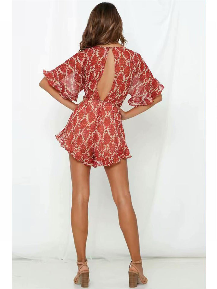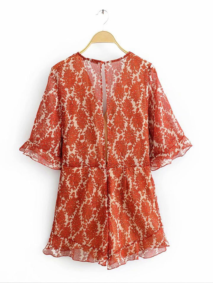 Playsuit met V-hals en rugdetail in oranje met bloemenprint